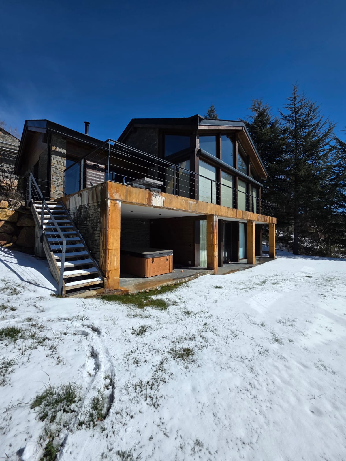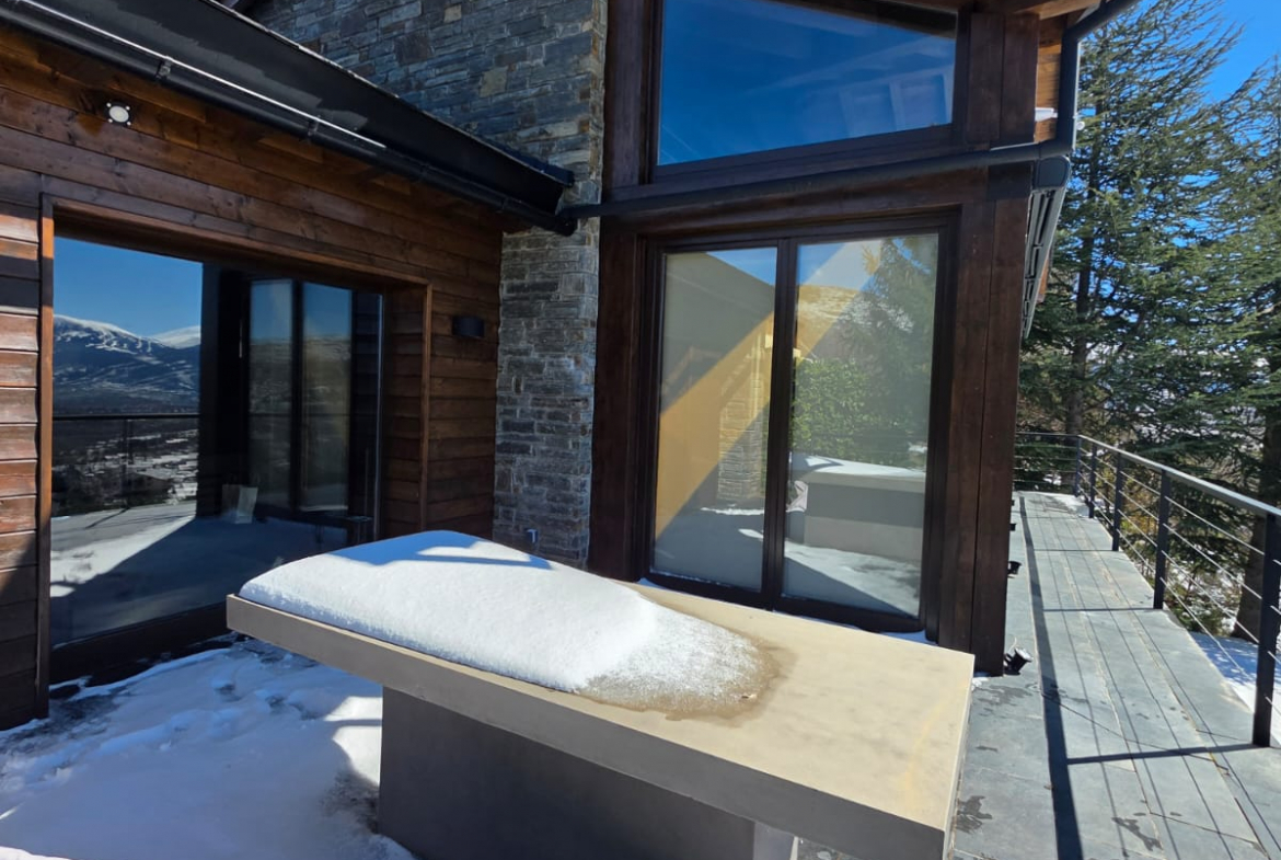 Esta casa de lujo casa de lujo diseñada para disfrutar todo el año, incorpora suelo radiante, chimenea y acabados de alta calidad como parquet y ventanas de madera, creando un ambiente cálido y acogedor.